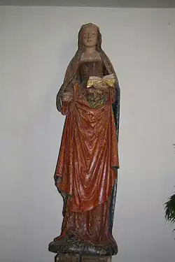 - Statue de sainte Suzanne (bois polychrome XVIe siècle), patronne des fiancé(e)s. Sainte Suzanne est en effet priée particulièrement par ceux qui songent à fonder un foyer.