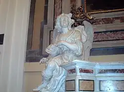À l'intérieur à droite, on remarque une balle, enlevée de la façade extérieure après un bombardement de la Seconde Guerre mondiale. Sur la gauche une plaque est posée à terre au milieu de l'atrium. Le maître-autel polychrome est particulièrement remarquable. Des sculptures d'anges et des tableaux ont été enlevés par le ministère des biens et activités culturels et placés dans des musées et autres lieux. Sur les côtés, on remarque les deux ronds de marbre représentant La Vierge à l'Enfant du XVIe siècle[2].