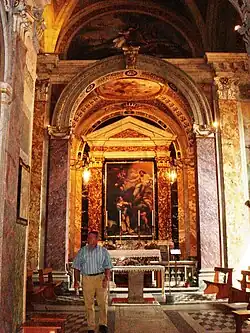 L'oratoire adjacent est situé dans les ruines du Théâtre de Pompée.