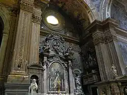 En face de l'entrée se trouve l'édicule monumental de saint Janvier, œuvre de Ferdinando Sanfelice, à l'exception du buste, sculpté par Domenico Antonio Vaccaro, et des anges du haut, œuvres du père, Lorenzo Vaccaro.