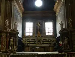 Le chœur est concédé à la famille Spinelli, princes de Cariati, qui la font décorer de marbres élégants. On y trouve six monuments funéraires du XVIe siècle et des stalles de bois de 1566 de la main de Benvenuto Tortelli, avec des fresques de Nicola Maria Rossi.