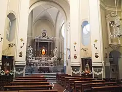 L'intérieur est caractérisé par huit piliers puissants qui soutiennent une coupole. Le maître-autel de marbre est flanqué des statues des saints titulaires. On distingue un groupe sculpté de Manuele Pacheco datant de 1775 et deux tableaux de Giovanni Bonito.
