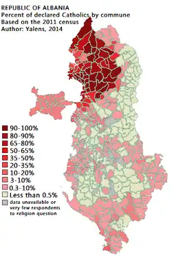 En 1991, la « Petite Constitution » stipule que l'Albanie n'a plus de religions d'État ni officielles, puis l'article 7 de la Constitution de 1998 précise que « La république d'Albanie est un État laïc » et que « L'État respecte la liberté de croyance religieuse »[3], autorisant[4],[5] ainsi l'Église catholique.