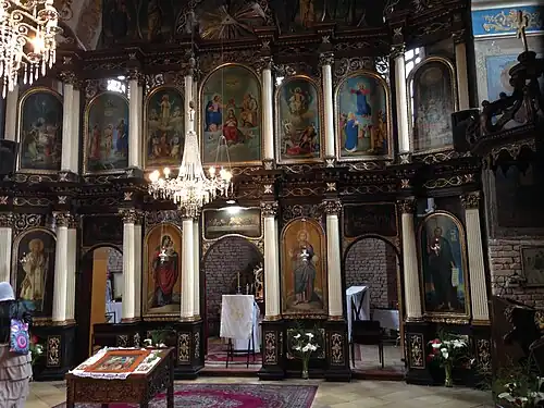 L'iconostase de l'église, en bois doré, a été sculptée par Gavrilo Ninković dans un style baroque et peinte par Živko Petrović, un artiste originaire de Zemun, qui est aussi l'auteur des fresques[2].