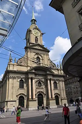 En 1725, le Conseil municipal de Berne décide de construire un nouveau temple. Les plans sont réalisés par l'architecte Albrecht Stürler, qui s'inspire du temple de Charenton rasé sur ordre du roi de France Louis XIV à la révocation de l'édit de Nantes en 1685[1]. Le temple est édifié entre 1726 et 1729 par le maître artisan de la ville Niklaus Schiltknecht (1687-1735). Il est inauguré en novembre[2].
