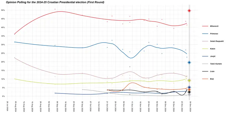 23. (hr) Commission électorale d'État de la république de Croatie, « Décision sur les résultats définitifs sur l'élection du Président de la République de Croatie tenue le 29 décembre 2024 » [PDF], sur izbori.hr, (consulté le ).