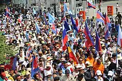 - ↑ Dorian Malovic, « Elections au Cambodge : l’opposition unie face à Hun Sen », La Croix, (lire en ligne)