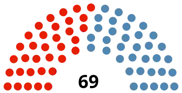 | 69 sièges de la Chambre des représentants (Majorité absolue : 35 sièges) | ||||||||||||||