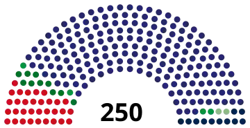 | 250 sièges de l'Assemblée nationale (majorité absolue : 126 sièges) | ||||||||||||||