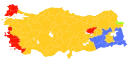 | Parti républicain du peuple (CHP) | 11 155 972 | 25,98 | 135 | ||||||