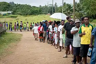 Il y a 192 632 inscrits sur les listes électorales - un chiffre qu'interroge Transparency International, puisque cela correspond environ à 80 % de la population, alors que « c'est l'une des plus jeunes populations du monde »[50]. Avec 121 792 votants, le taux de participation est de 63 %. Il est plus élevé dans les zones rurales que dans les deux villes (Port-Vila et Luganville, où il dépasse à peine 50 %[51].