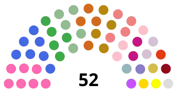 | 52 sièges du Parlement (majorité absolue : 27 sièges) | ||||||||||||||