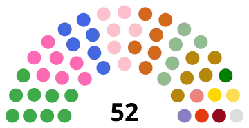 | 52 sièges du Parlement (majorité absolue : 27 sièges) | ||||||||||||||