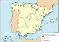 Pour ces raisons, les entreprises du secteur se tournent vers les filières thermiques, au fioul notamment, ainsi que vers l'énergie nucléaire, dès la fin des années 1950. La première centrale du pays, la centrale José Cabrera, une centrale de 153 MW située à Zorita, près de Guadalajara, est mise en service par Unión Fenosa à la fin de 1968[4]. Des entreprises espagnoles mettront en service deux autres centrales peu de temps après : Santa María de Garoña en 1971 et Vandellós I l'année suivante.