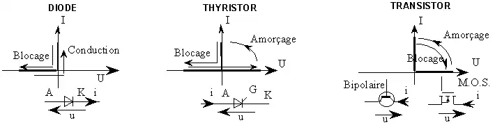 Ce sont des interrupteurs électroniques dont le blocage ou l'amorçage sont commandés par une tension (Ils se comportent comme des portes que l'on peut ouvrir ou fermer à volonté). Ce sont les plus utilisés dans le domaine des faibles et moyennes puissances (quelques kilowatts).