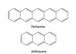 Les composés aromatiques polycycliques tels que le pentacène et le rubrène comptent parmi les molécules semi-conductrices de petites tailles.