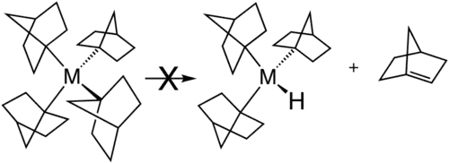 Des ligands alkyles volumineux, tels que le tert-butyle ou le triméthylsilyle, peuvent empêcher l'atome d'hydrogène de s'approcher d'une position coplanaire avec le métal et les atomes α et β. De même, si le centre métallique n'a pas de site vacant, par exemple dans le cas d'un complexe déjà en configuration à 18 electrons, l'élimination de β-hydrure est impossible.