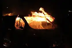 - ↑ (sv) « Schools burn on fifth night of Stockholm riots », (consulté le )