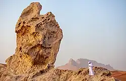 Formations montagneuses dans l'aire protégée de Meleiha au Charjah. Mars 2022.