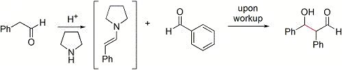 Les énamines sont aussi très utiles pour ajouter un groupement en alpha d'une cétone ou d'un aldéhyde: