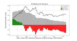 La Roumanie bénéficie d'un niveau élevé d'indépendance énergétique : elle n'importe que 24 % de ses besoins en énergie (pétrole surtout).