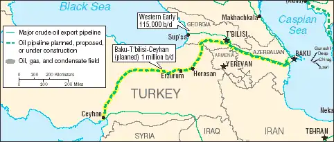 L'oléoduc Bakou-Tbilissi-Ceyhan, qui part de l'Azerbaïdjan pour atteindre le port méditerranéen de Ceyhan, en Turquie, a été inauguré en 2005.