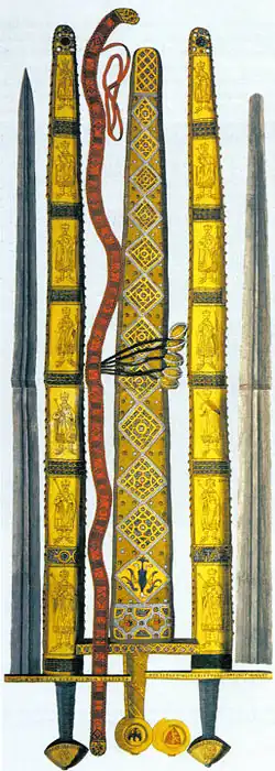 - (de) Cet article est partiellement ou en totalité issu de l’article de Wikipédia en allemand intitulé « Reichsschwert » (voir la liste des auteurs).