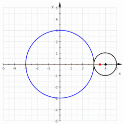 - Lorsque le point est situé sur le cercle mobile (), on obtient une épicycloïde[1].