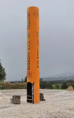 - en Équateur, le monument est situé à une vingtaine de kilomètres au nord de Quito et a été baptisé Mitad del Mundo en français : « Milieu du monde » ;
