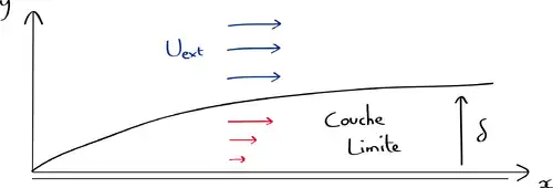 Analysons l'écoulement bidimensionnel stationnaire dans le plan près d'une plaque plane placée en , pour un écoulement extérieur potentiel qu'on suppose parallèle à la paroi.
