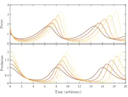 En mathématiques, les équations de prédation de Lotka-Volterra, que l'on désigne aussi sous le terme de « modèle proie-prédateur », sont un couple d'équations différentielles non linéaires du premier ordre, et sont couramment utilisées pour décrire la dynamique de systèmes biologiques dans lesquels un prédateur et sa proie interagissent. Elles ont été proposées indépendamment par Alfred James Lotka en 1925[1] et Vito Volterra en 1926[2].