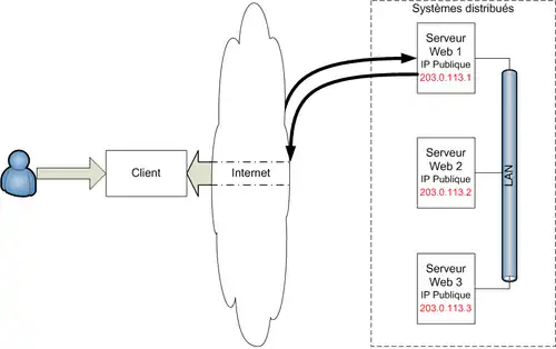 - les systèmes distribués et serveurs miroirs, où toutes les adresses IP des serveurs Web sont visibles par les clients
