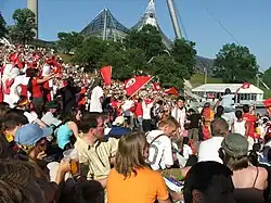 La même année, l'équipe dispute la phase qualificative de la coupe du monde 2006, et réussit à battre la Guinée (défaite 1-2 et victoire 2-0)[203],[204], le Kenya (deux victoires 1-0 et 2-0)[205],[206], le Malawi (nul 2-2 et victoire 7-0)[207],[208], le Botswana (deux victoires 4-1 et 3-1)[209],[210] et le Maroc, après un match nul à l'extérieur[211] et un match nul (2-2) lors de la dernière journée au stade du 7-Novembre à Radès devant 60 000 spectateurs[212], lui permettant de se qualifier pour la coupe du monde pour la quatrième fois de son histoire et la troisième fois consécutive[213].