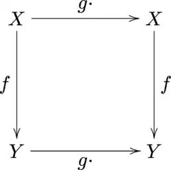 La condition d'équivariance peut aussi être comprise par le diagramme commutatif suivant. On notera que g· désigne l'application qui prend un élément z et renvoie g·z.