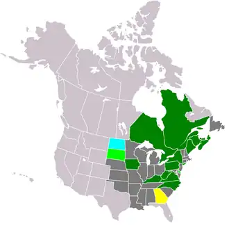 Il a été introduit en Europe, mais pas en grand nombre, et les spécimens y sont généralement de moindre taille (25 mètres, contre 40 en Amérique). En France, on le rencontre notamment dans la région du Limousin du côté du lac de Vassivière où le climat ressemblerait étrangement à celui de la côte nord-est de l'Amérique du Nord.