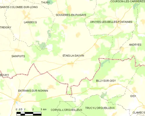 Étais-la-Sauvin est une commune française située dans le département de l'Yonne en Bourgogne-Franche-Comté. Elle bénéficie d'un climat équilibré entre humidité et fraîcheur de la Puisaye proche du val de Loire et air chaud et humide venant du sud du Morvan d'altitude.