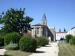 Le centre-ville d'Étaules et le clocher de l'église Notre-Dame (XVIIIe siècle). | |||||