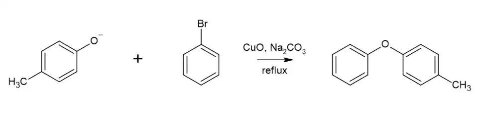 Les éthers bis-aryliques (tels que l'éther diphénylique) ne peuvent cependant pas être synthétisés par la synthèse de Williamson, car les halogénures d'aryle ne peuvent pas subir de substitution nucléophile. On peut cependant dans ce cas passer par une condensation d'Ullmann (en), une réaction faisant réagir un halogénure d'aryle avec un phénol pour former un éther bis-arylique en présence d'un catalyseur à base de cuivre, par exemple l'oxyde de cuivre(II)[6].