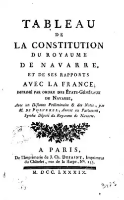 - Lettre de Polverel, syndic, député des états de Navarre, lue à l'Assemblée Nationale le , .