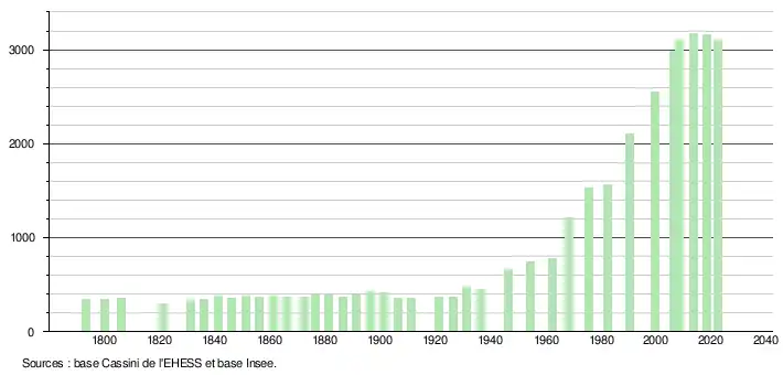 - ↑ Fiches Insee - Populations de référence de la commune pour les années 2006, 2007, 2008, 2009, 2010, 2011, 2012, 2013, 2014, 2015, 2016, 2017, 2018, 2019, 2020, 2021 et 2022.