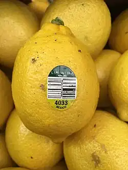 - ↑ Jean Siag (2016) Le saviez-vous ? Les étiquettes de fruits ne sont pas comestibles ; La Presse du 16 aout 2016; consulté le 26 septembre 2022.