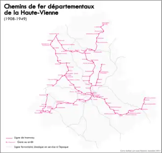Ce réseau est même enrichi par la mise en service des lignes secondaires des Chemins de fer départementaux de la Haute-Vienne, qui pendant les premières décennies du XXe siècle, permettent de rallier les campagnes haut-viennoises au départ de Limoges.