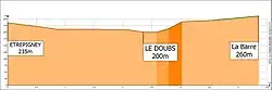 Le village d'Étrepigney qui a été construit sur une terre gagnée sur la forêt se trouve à une altitude de 240 mètres alors que la plaine du Doubs se trouve à 210 mètres.