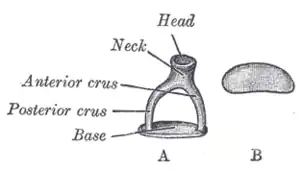 - ↑ Le terme étrier est utilisé en médecine et dans le langage courant, le terme stapès est utilisé en anatomie.