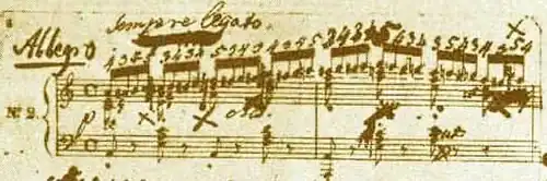Partition témoin de l'Étude Op. 10, n° 2, avec doigtés, écrite par Chopin, vers 1833.