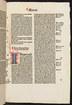 L'Évangile selon Marc est le plus bref des quatre Évangiles canoniques[2] et, à l'instar des trois autres, il est écrit dans le grec ancien dominant alors, la koinè[3].