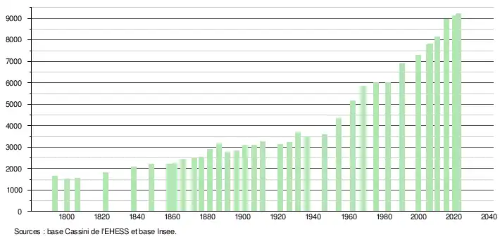 9 224 hab. (2022 en évolution de +1,65 % par rapport à 2016)