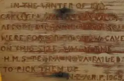 Ils avaient construit un dépôt à la moraine Hells Gate (« Porte de l'Enfer »), à 74° 52′ S, 163° 50′ E, située sur l'île. Il contient principalement un traîneau avec des équipements. Ce dépôt est classé comme monument historique de l'Antarctique.