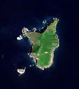 Elle est voisine de deux îlots : l'île Sutil (Sutil Island), située au sud-ouest off, et le rocher Shag Rock proche du rivage nord.