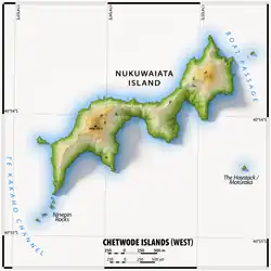 - ↑ (en) « Chetwode Islands (Nukuwaiata & Te Kakaho) », Cruise guide (consulté le ).